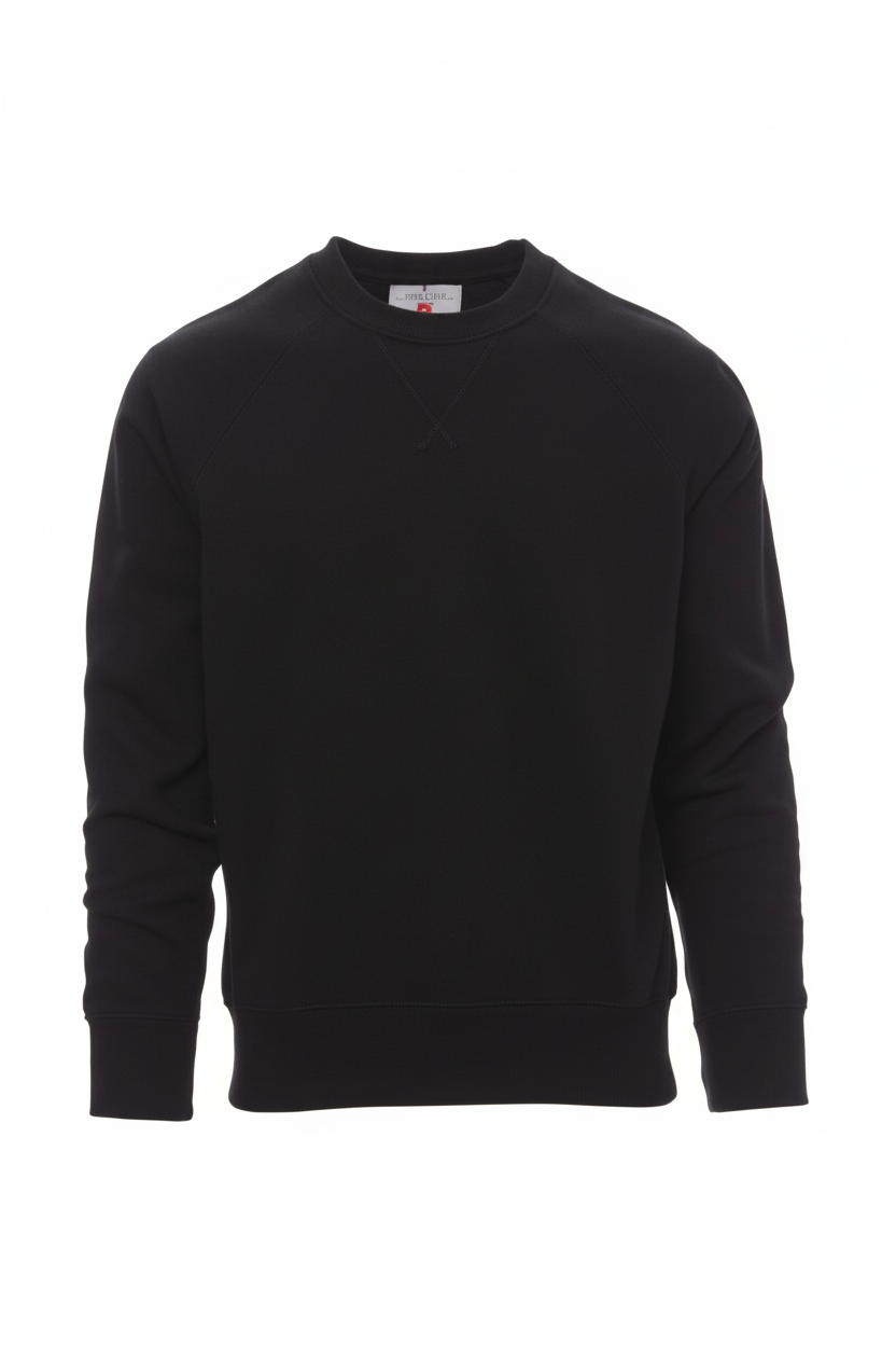 Men’s crew neck sweatshirt, Round-design neck stitching, fitted sleeves, stretch rib cuffs and hem, reinforced seams.